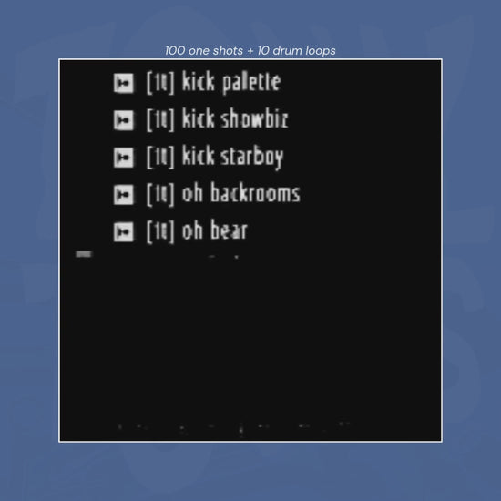8 808s, 5 claps, 2 cymbals, 15 fx, 4 hi-hats, 6 kicks, 6 open hats, 30 percs, 4 rims, 3 rolls, 1 shaker, 10 snares, 1 tom, 5 vox, 10 drum loops